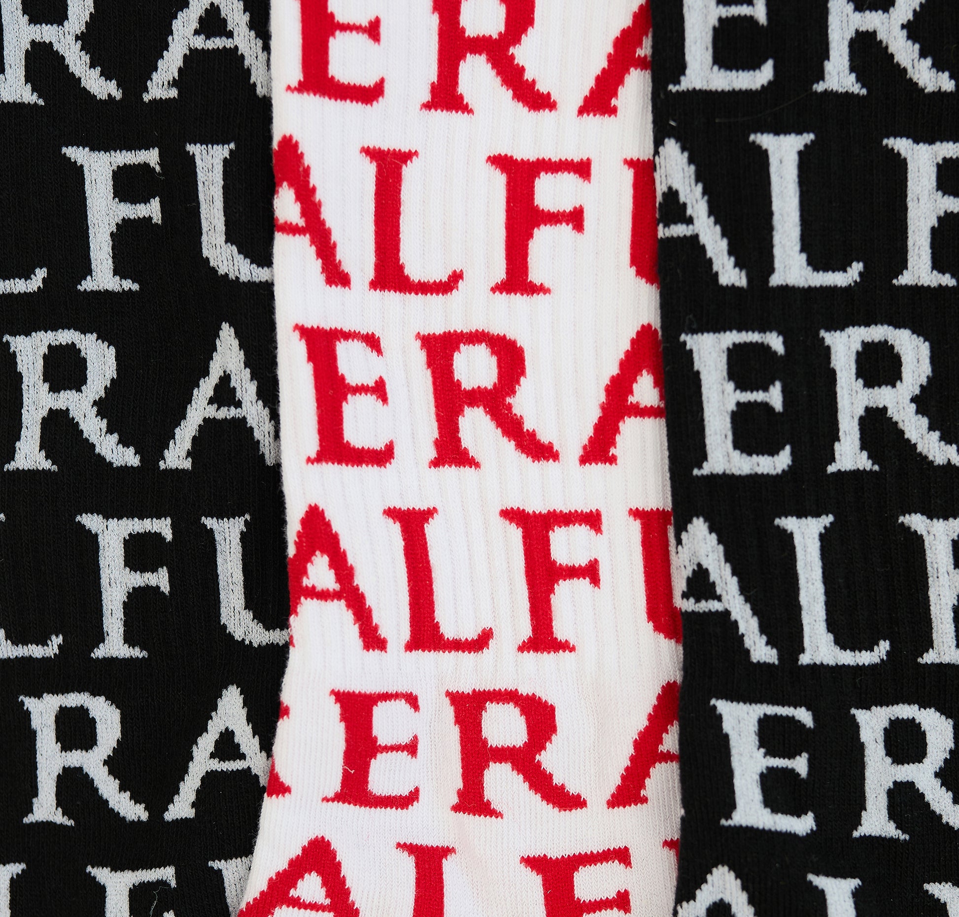 Funeral Woven Knit Sock Based on Screen-Printed Funeral Monogram